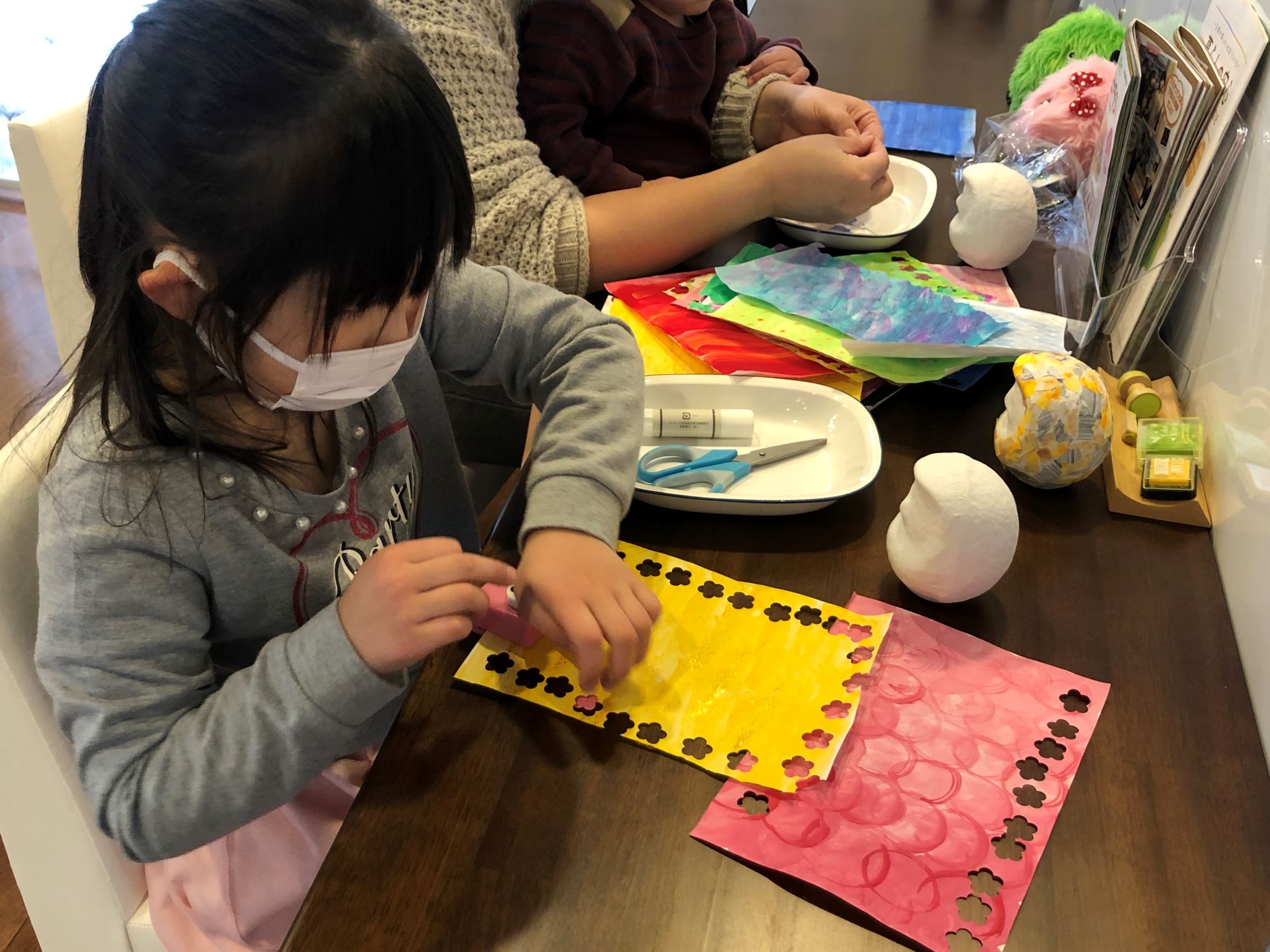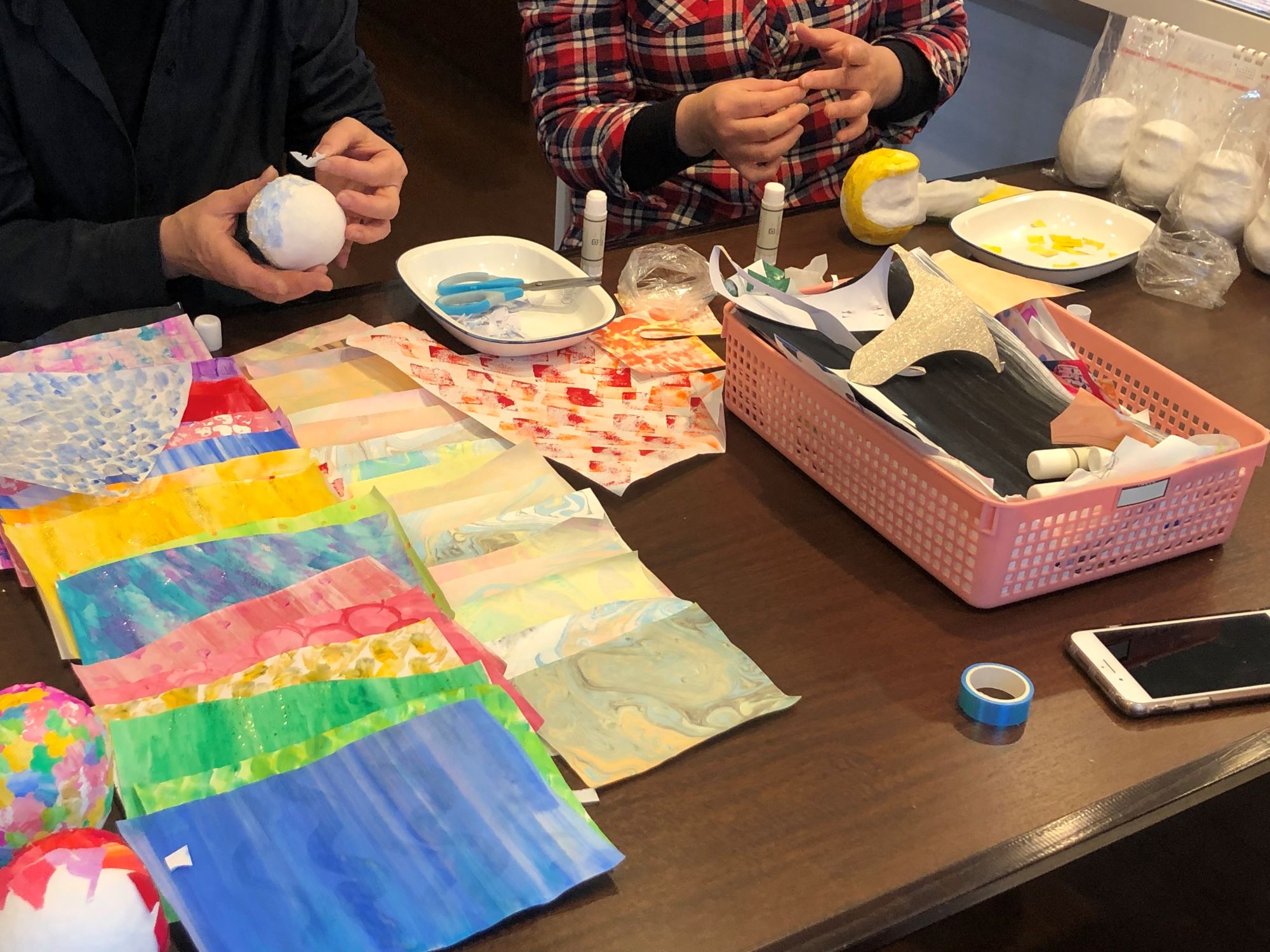 いろいろな色や模様のカラペにみなさん大はしゃぎ!どれがいいかな……選んだり組み合わせたり、悩みながらも楽しい時間です。