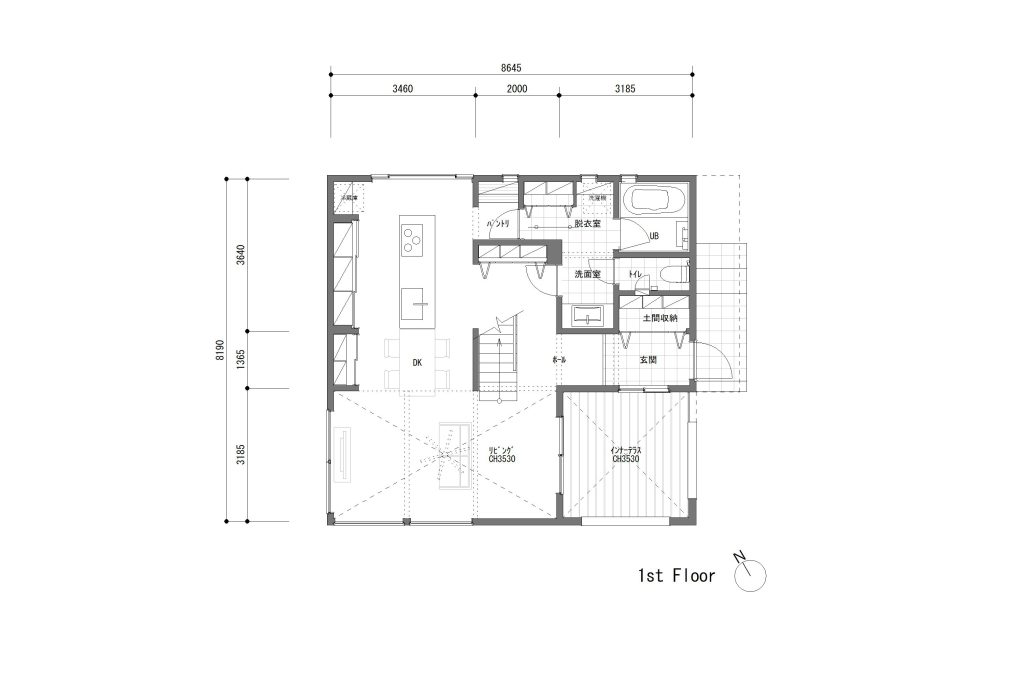 間取りには「楽しい」「家事楽」「快適」が共存するアイデアが詰まっています。回遊性のある水廻り動線、広々した階段スペース、周囲の視線を気にせずに使えるインナーテラスやルーフテラス、室内干しや遊びにも使えるフリースペースなどなど。