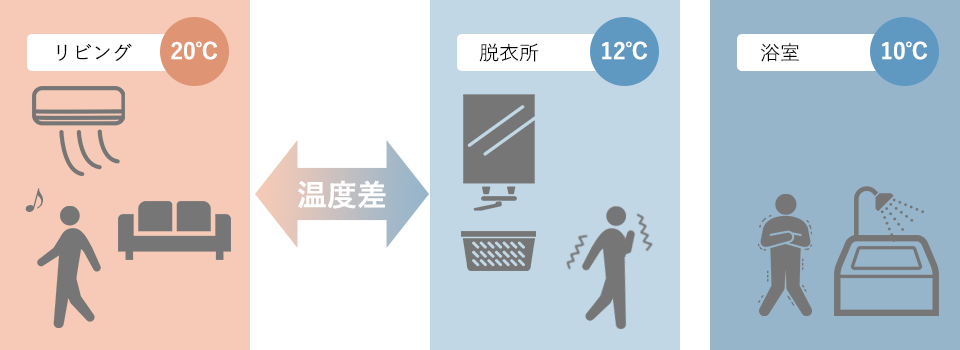 部屋間の温度差はヒートショックを起こす要因になってしまいます。